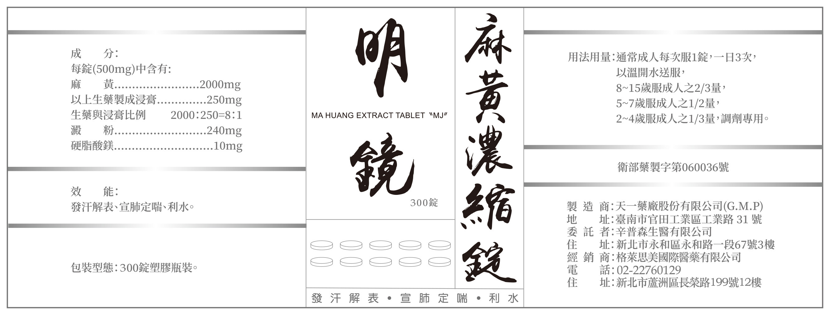 【體重管理自費調配】明鏡麻黃濃縮錠(300錠)