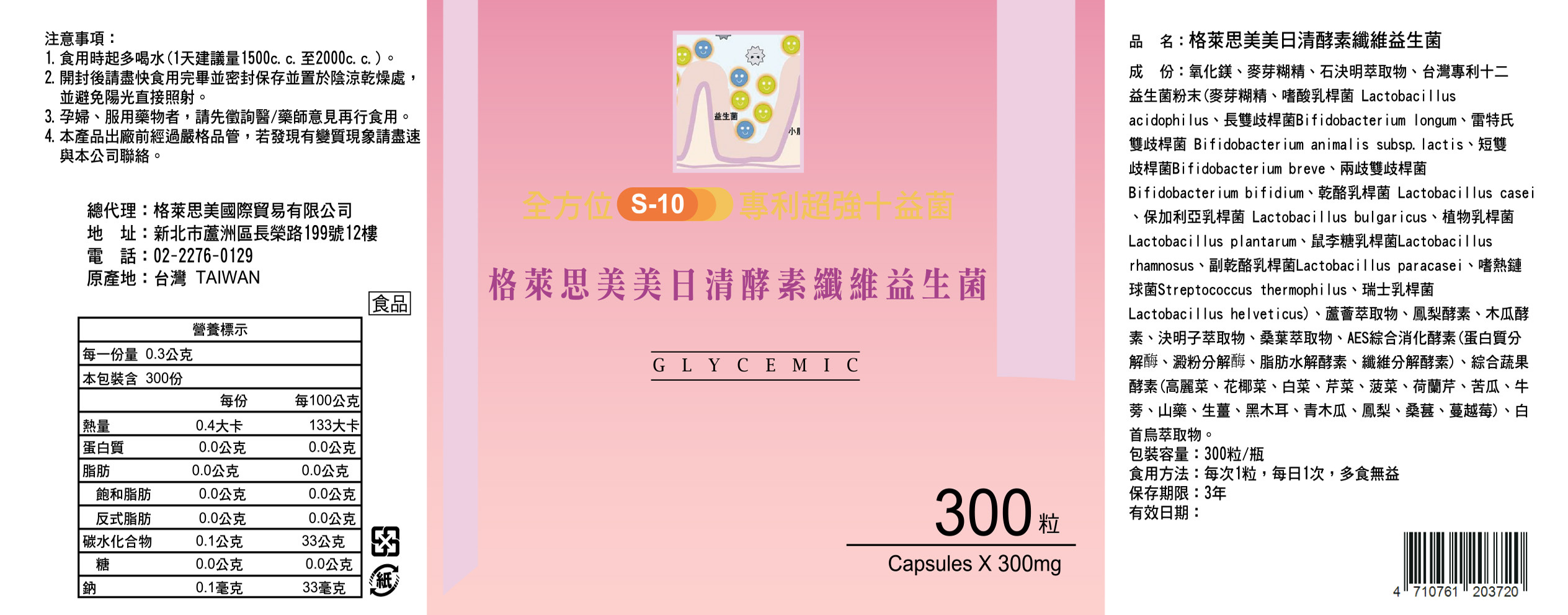 【體重管理自費調配】格萊思美 美日清酵素纖維益生菌膠囊 (300粒)
